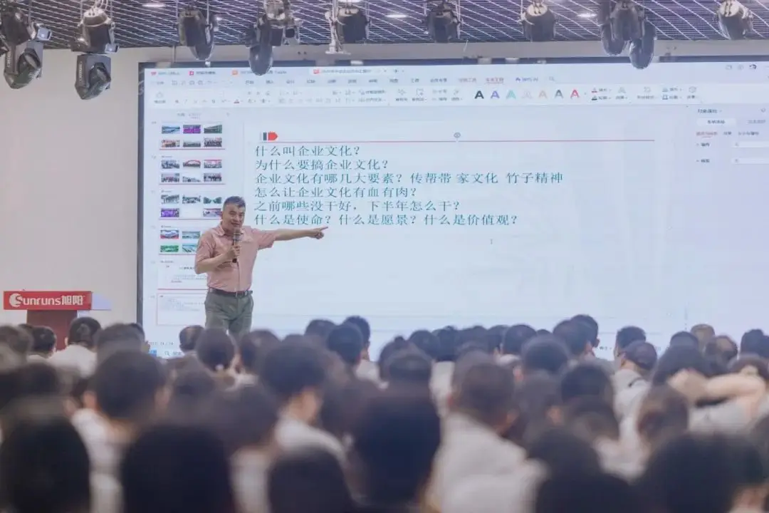 年中會(huì)伊始,全場(chǎng)齊聲合唱《祖國(guó)不會(huì)忘記》,旋律里的赤誠(chéng),道出了旭陽(yáng)人“雖不常提及,卻永記于心”的真摯情感,這份感恩,獻(xiàn)給每一位關(guān)心、支持和幫助旭陽(yáng)成長(zhǎng)的朋友。核心層領(lǐng)導(dǎo)組組長(zhǎng)、董事長(zhǎng)朱雙單強(qiáng)調(diào):“旭陽(yáng)每年舉辦兩次年會(huì),不計(jì)成本投入大量人力,就是為了搭建難得的學(xué)習(xí)分享平臺(tái),凝心聚力、共同成長(zhǎng)。希望大家以空杯心態(tài)、虔誠(chéng)態(tài)度、感恩之心,分秒必爭(zhēng)珍惜這四天時(shí)光。”