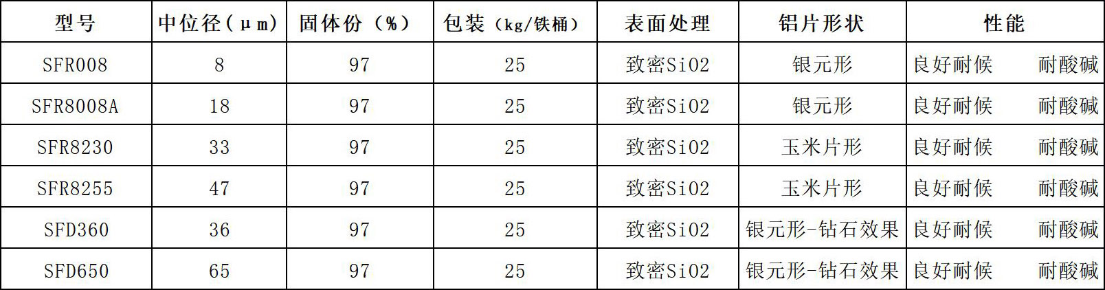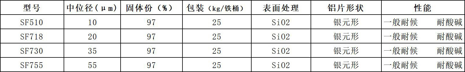 01 雙層包覆鋁銀粉:采用有機(jī)-無機(jī)雙層包覆。廣泛應(yīng)用于戶外高要求的粉末涂料(戶外建材、裝飾等)。